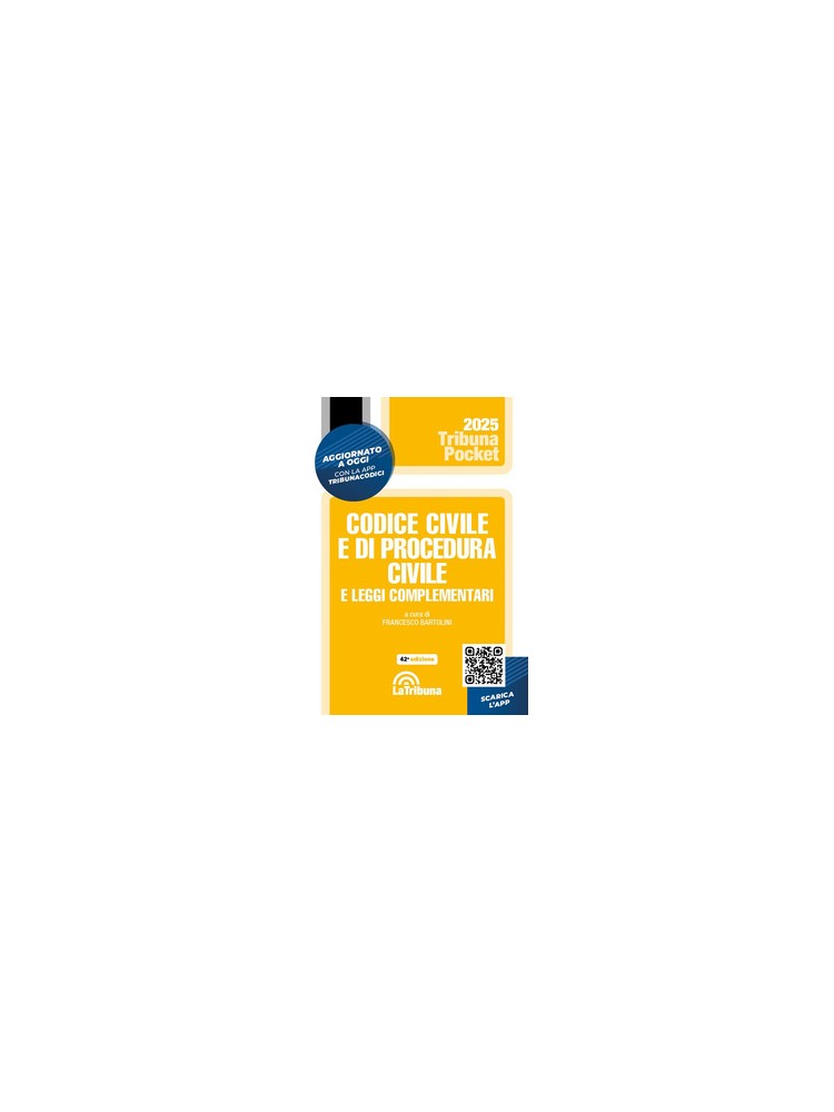 | Titolo | CODICE CIVILE E DI PROCEDURA CIVILE E LEGGI COMPLEMENTARI 2025. CON APP TRIBUNACODICI |