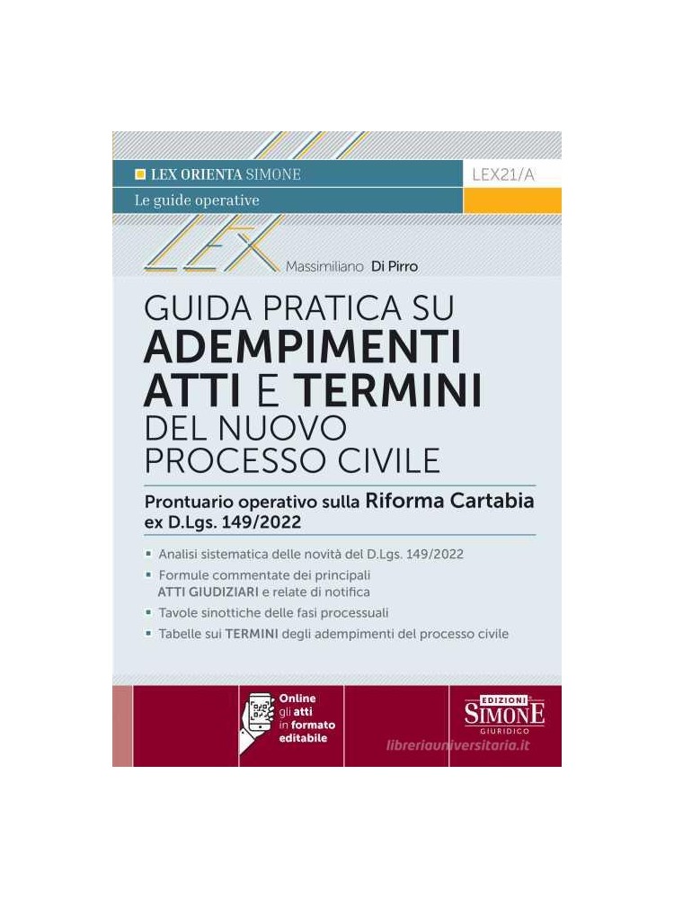 | Titolo | GUIDA PRATICA SU ADEMPIMENTI ATTI E TERMINI DEL NUOVO PROCESSO CIVILE |