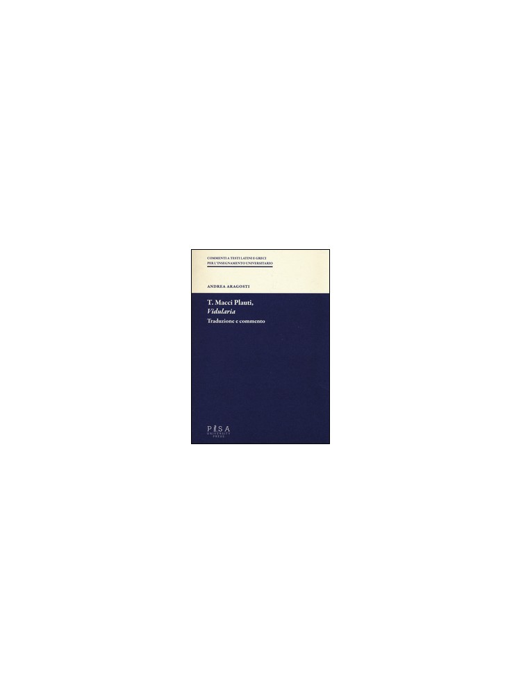 | Titolo | T MACCI PLAUTI VIDULARIA TRADUZIONE E COMMENTO |